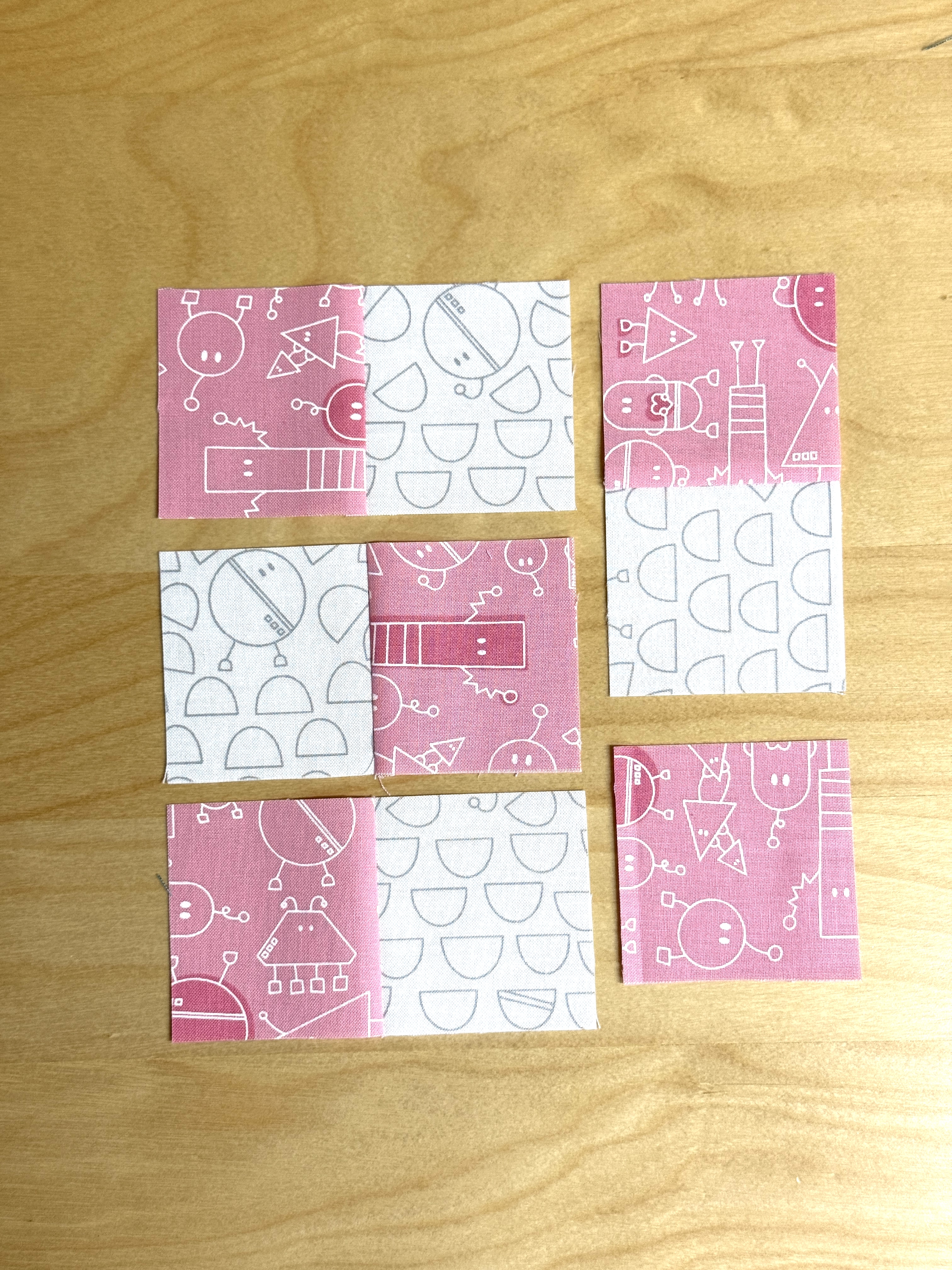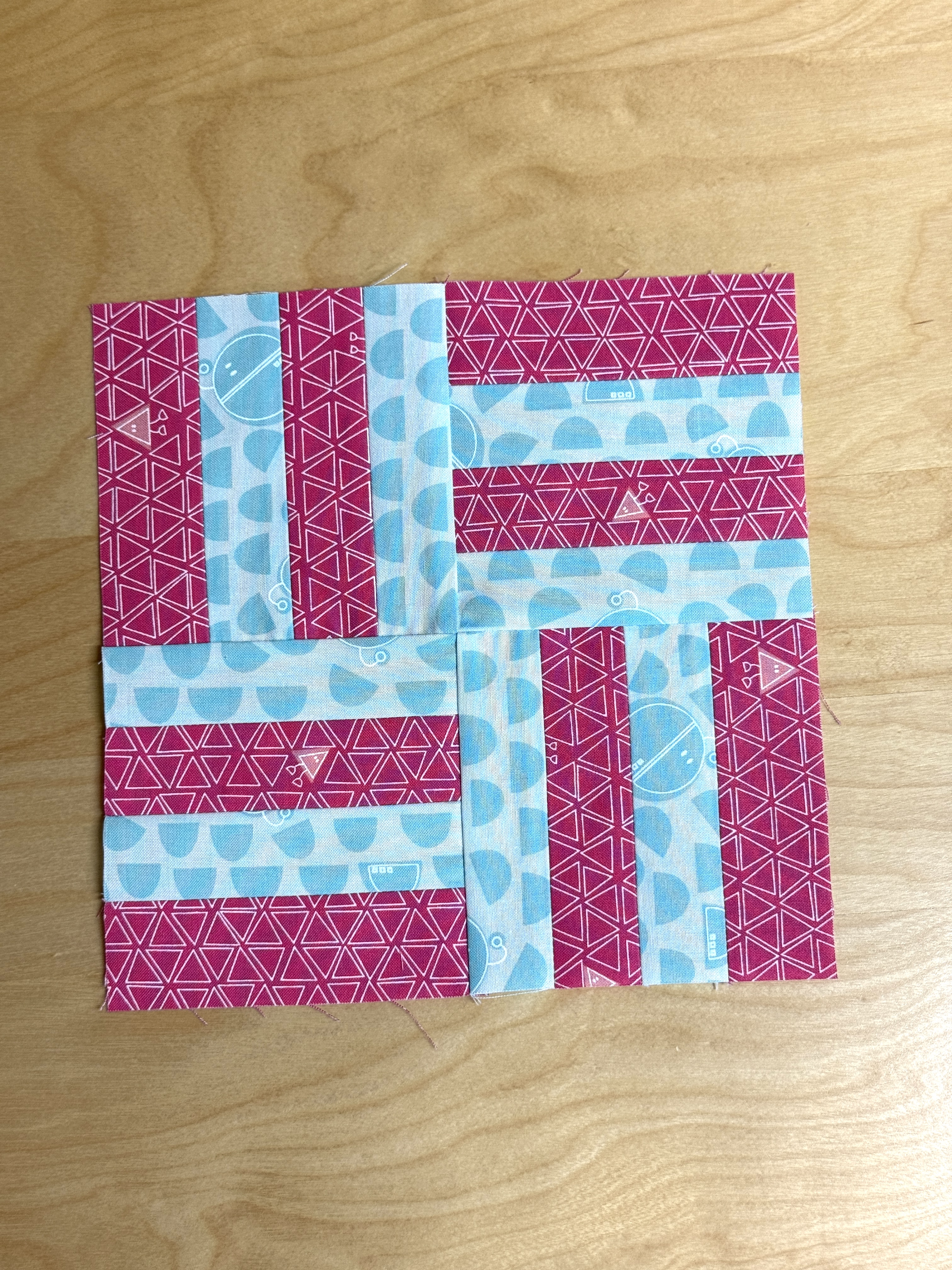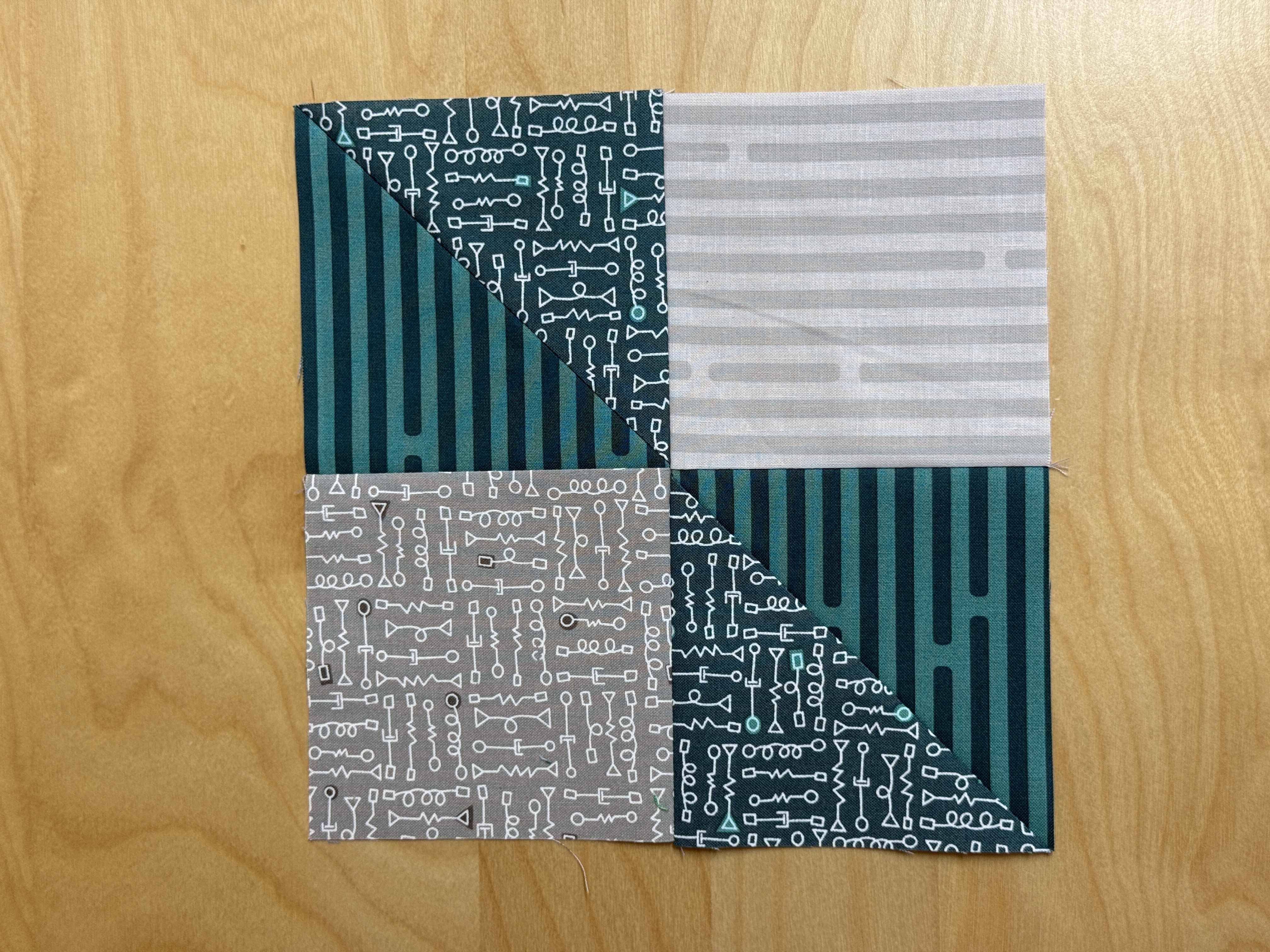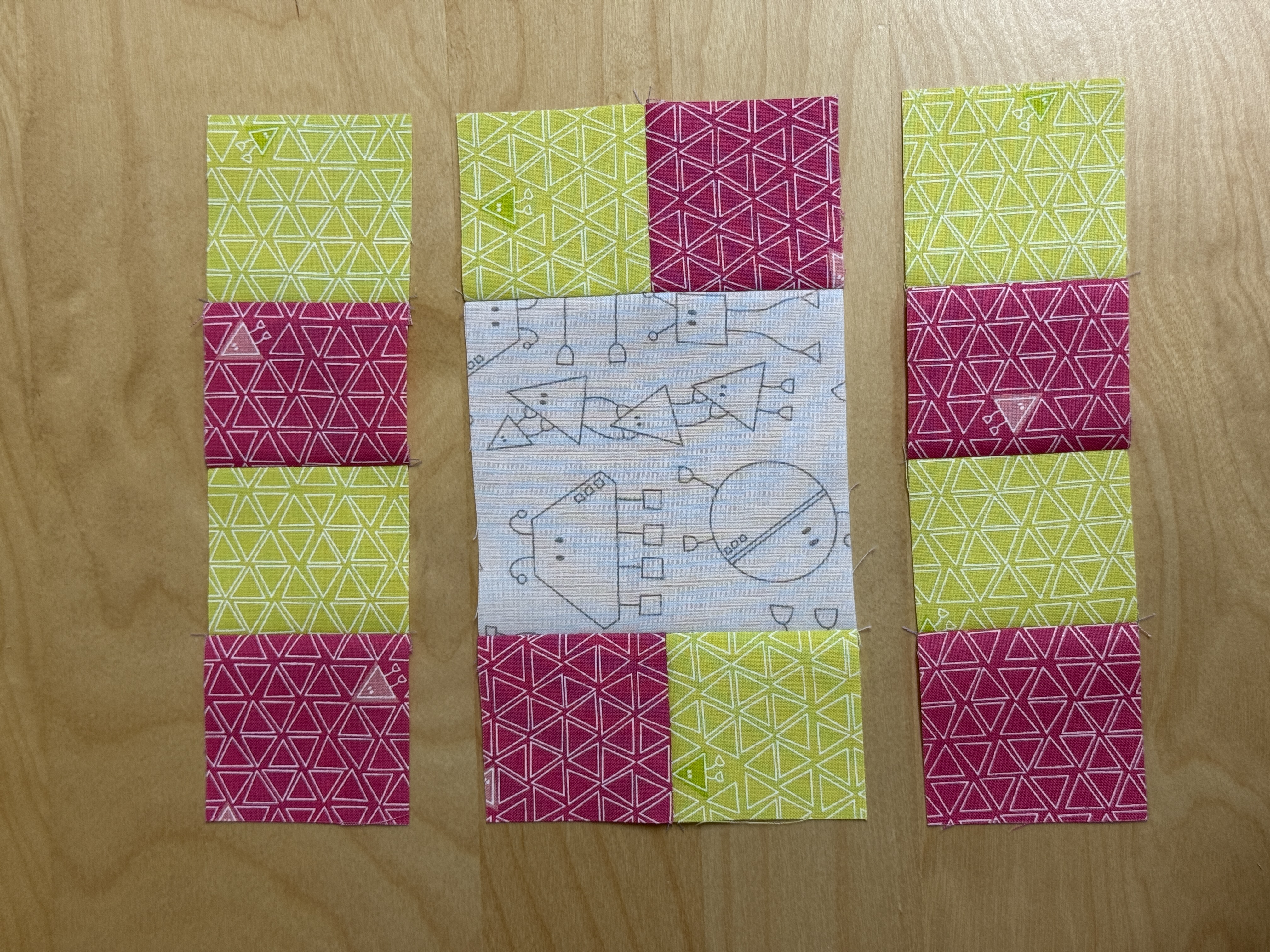 Nähen Sie diese wie abgebildet zusammen und bügeln sie alles gut. Ihr Block ist jetzt 8,5".