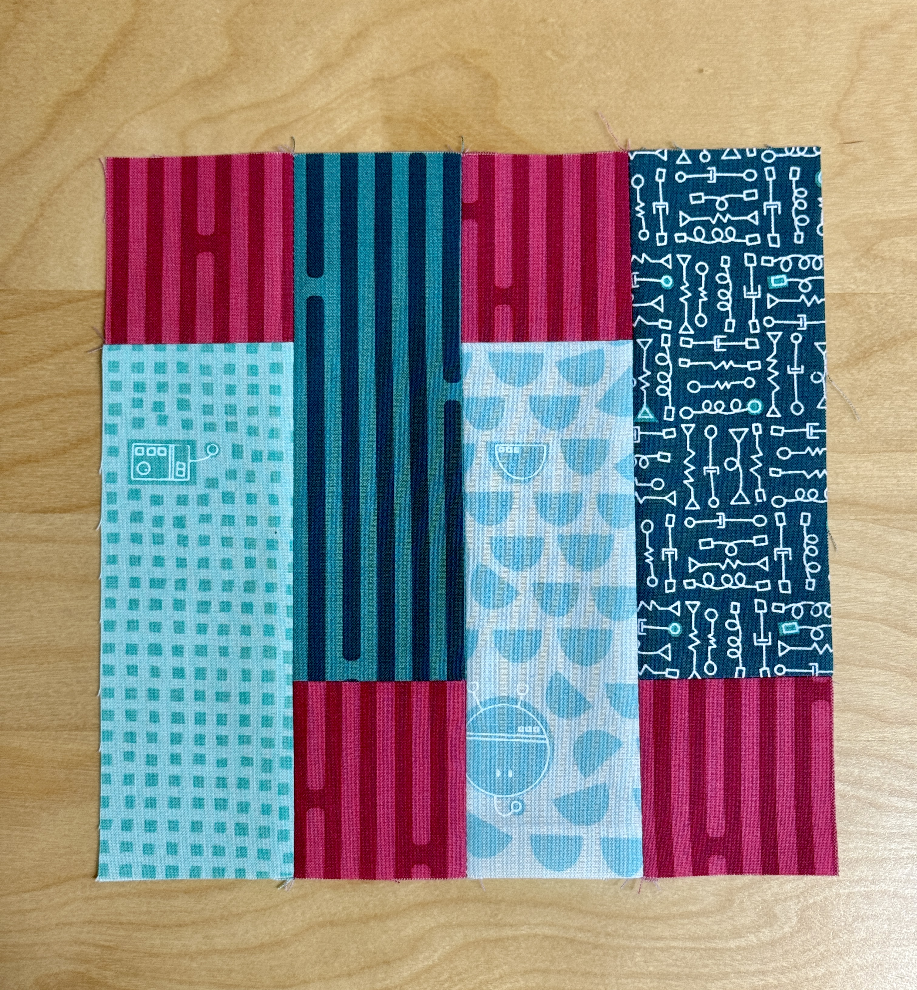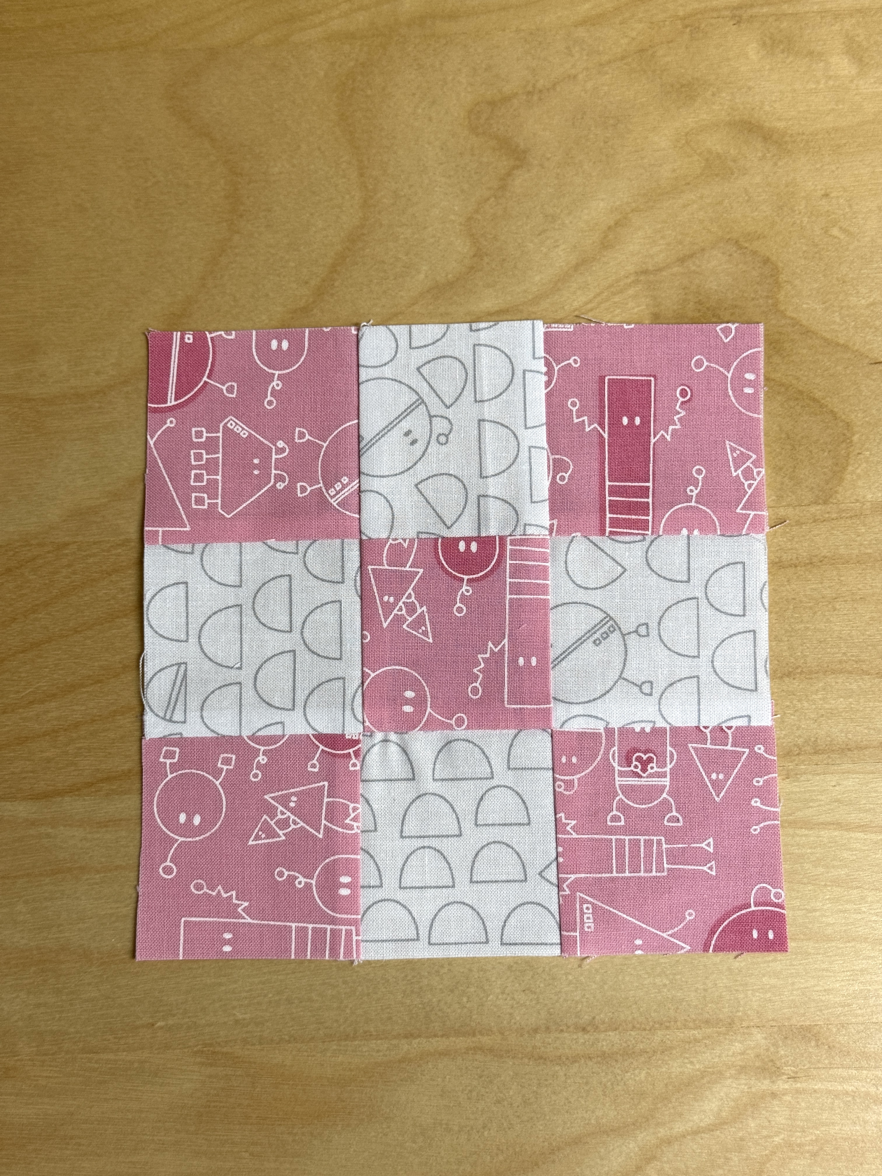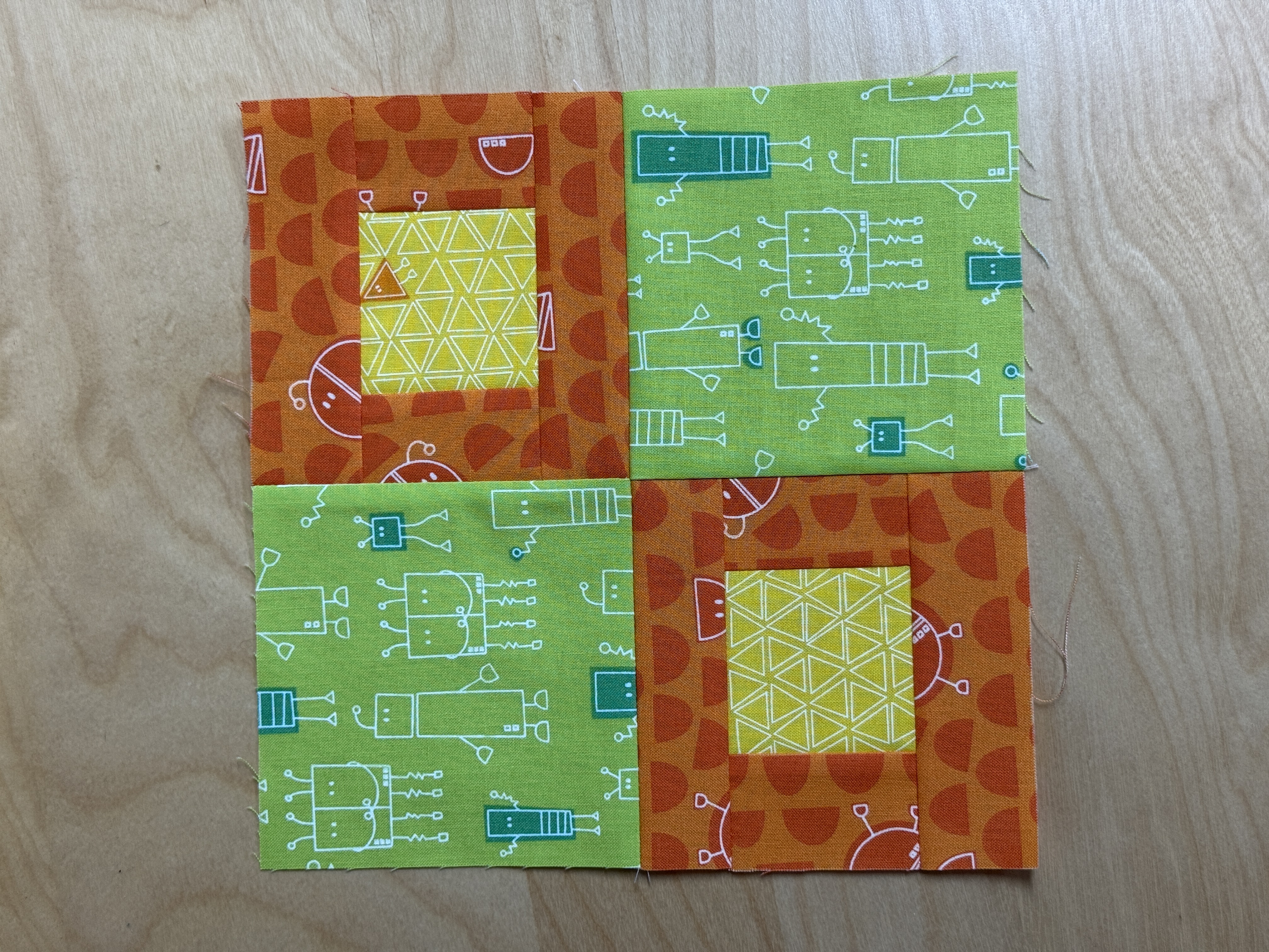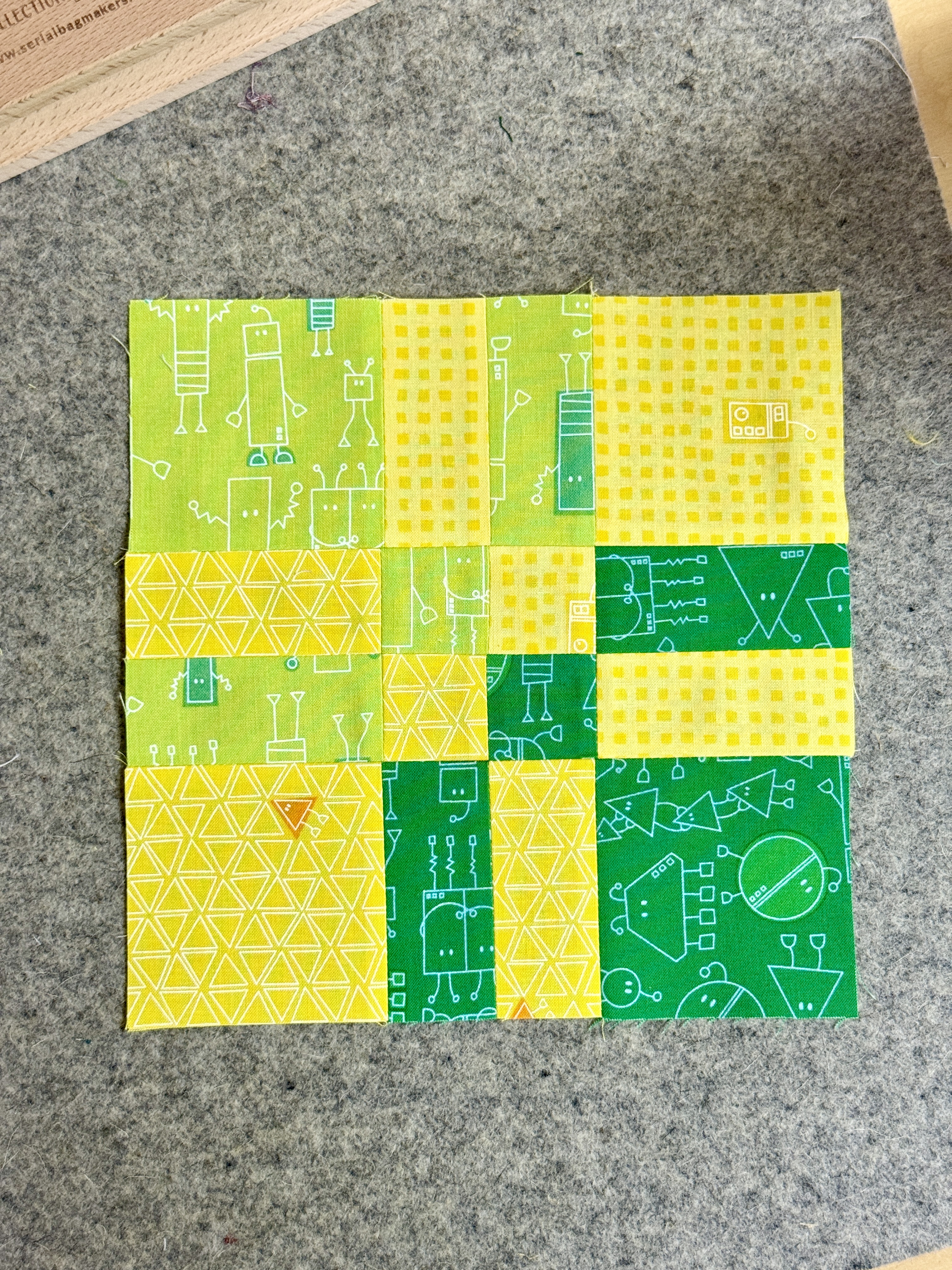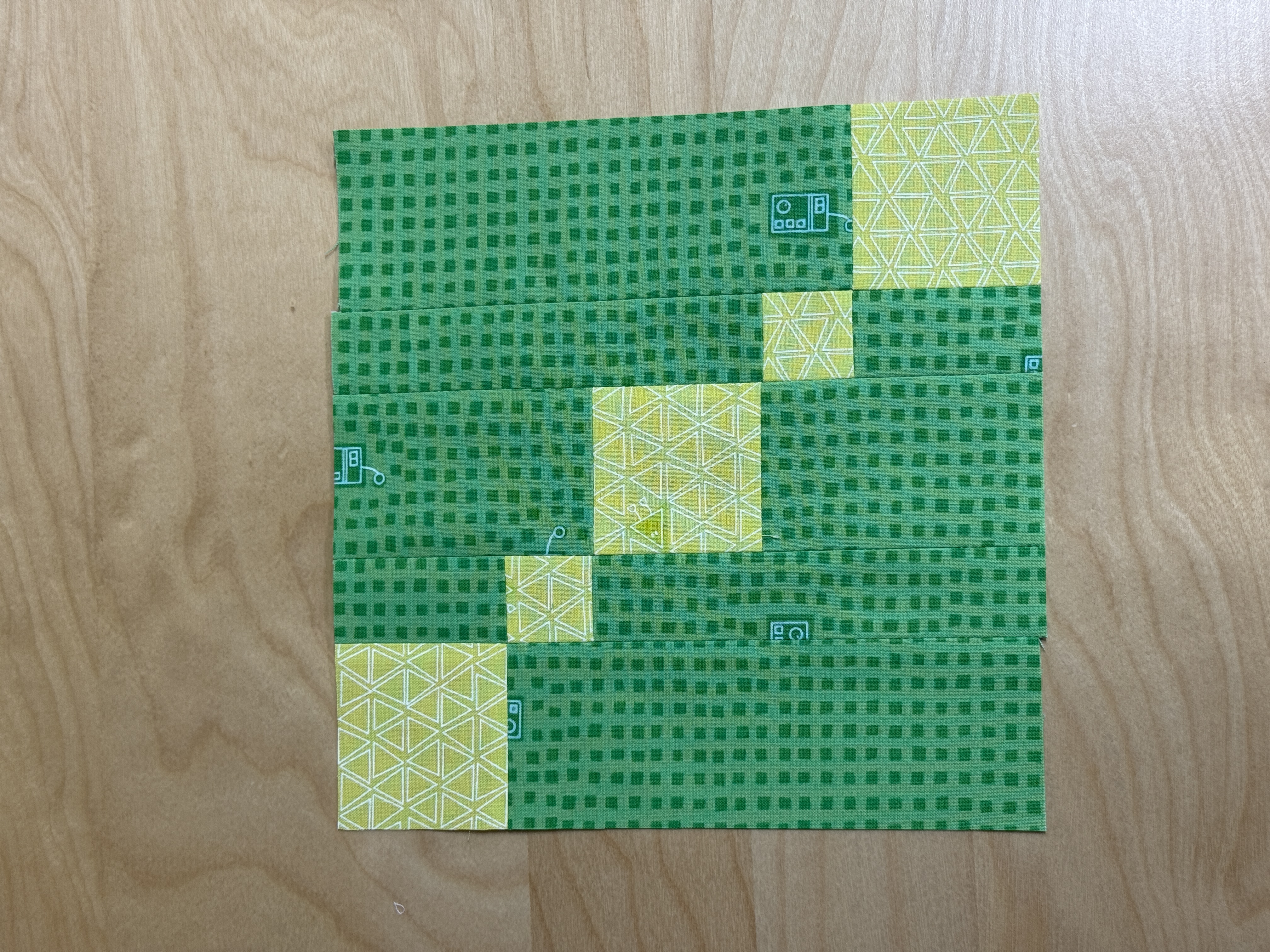 Nähen Sie diese wie abgebildet zusammen und bügeln sie alles gut. Ihr Block ist jetzt 8,5".