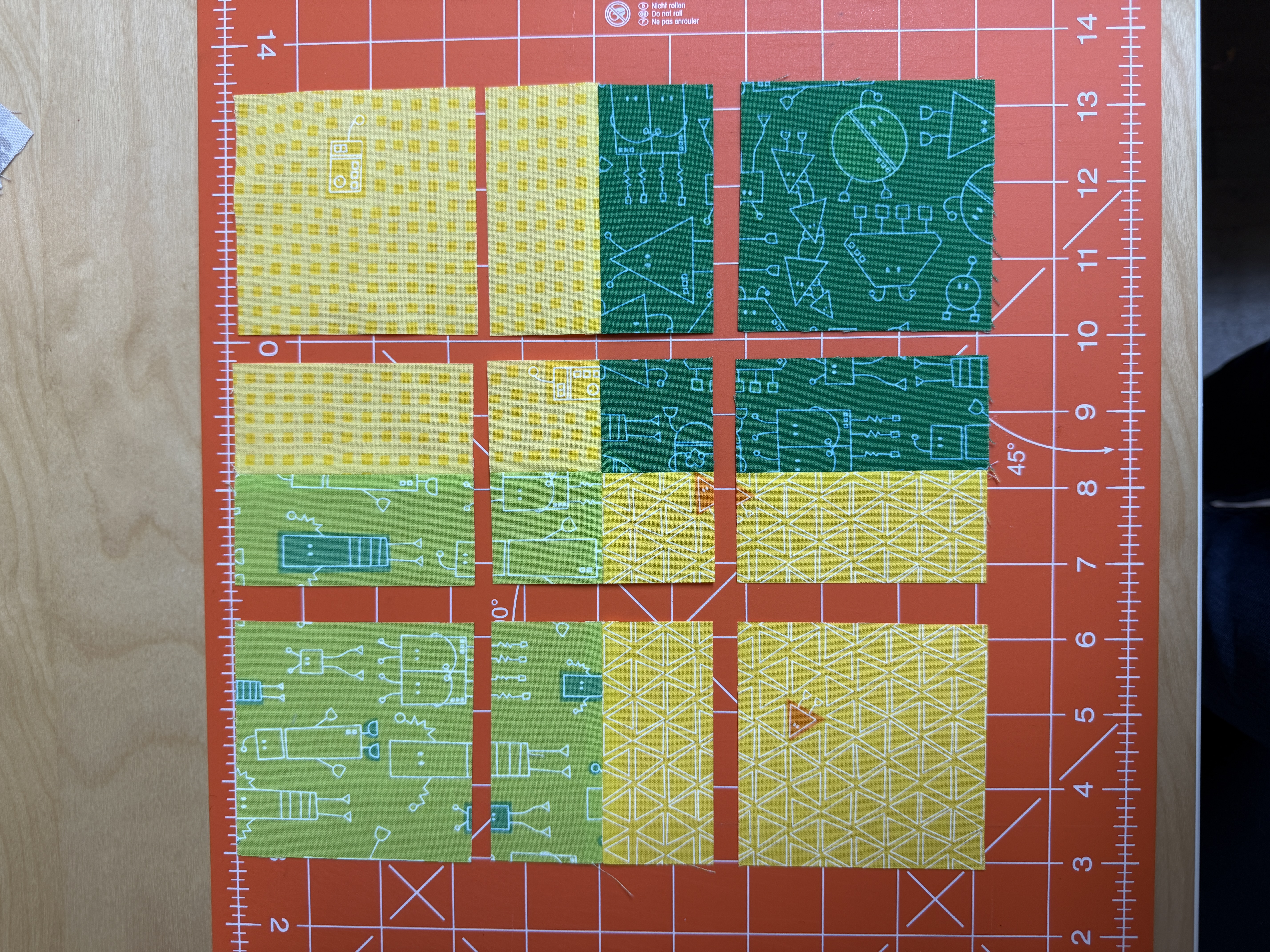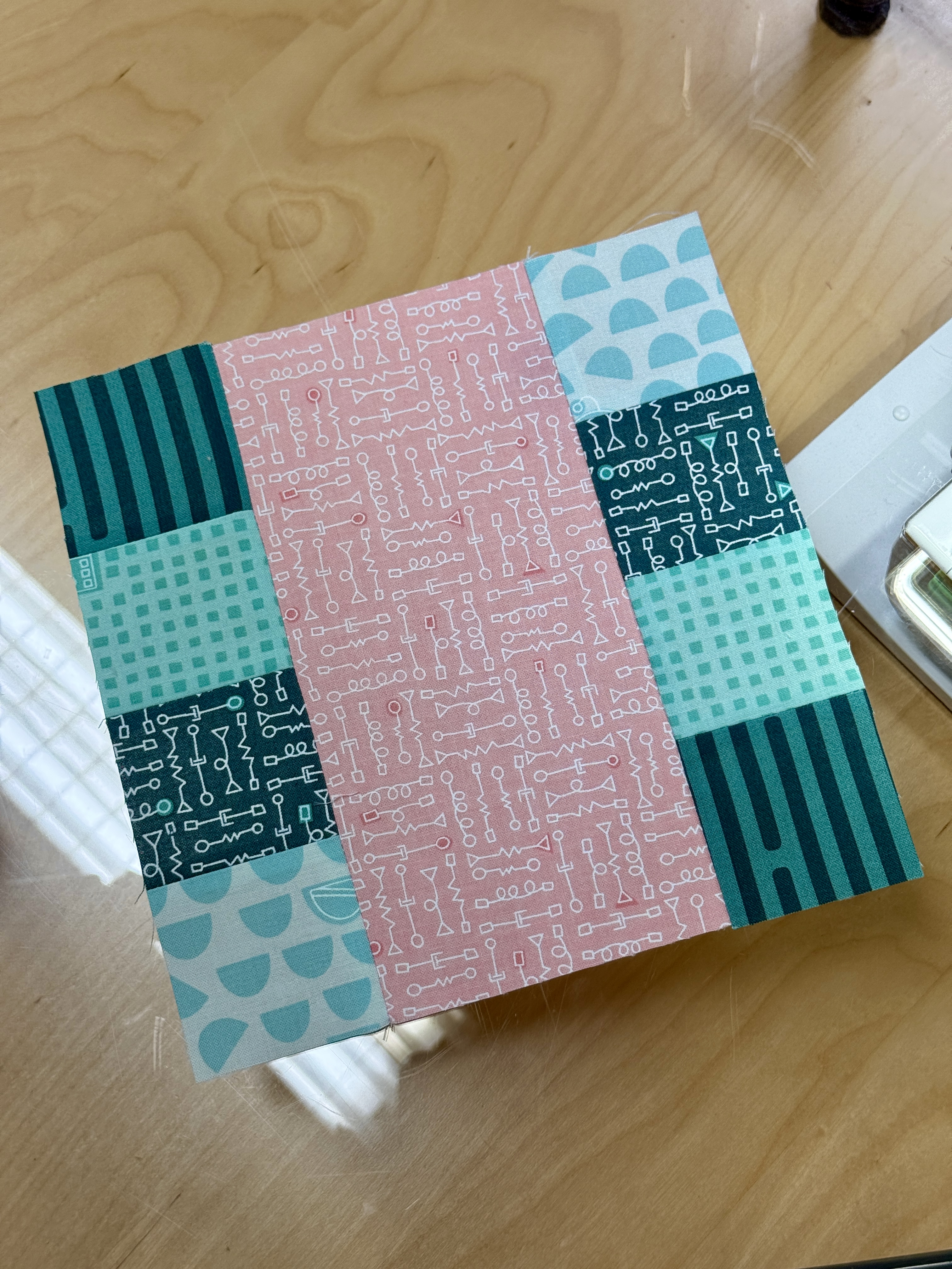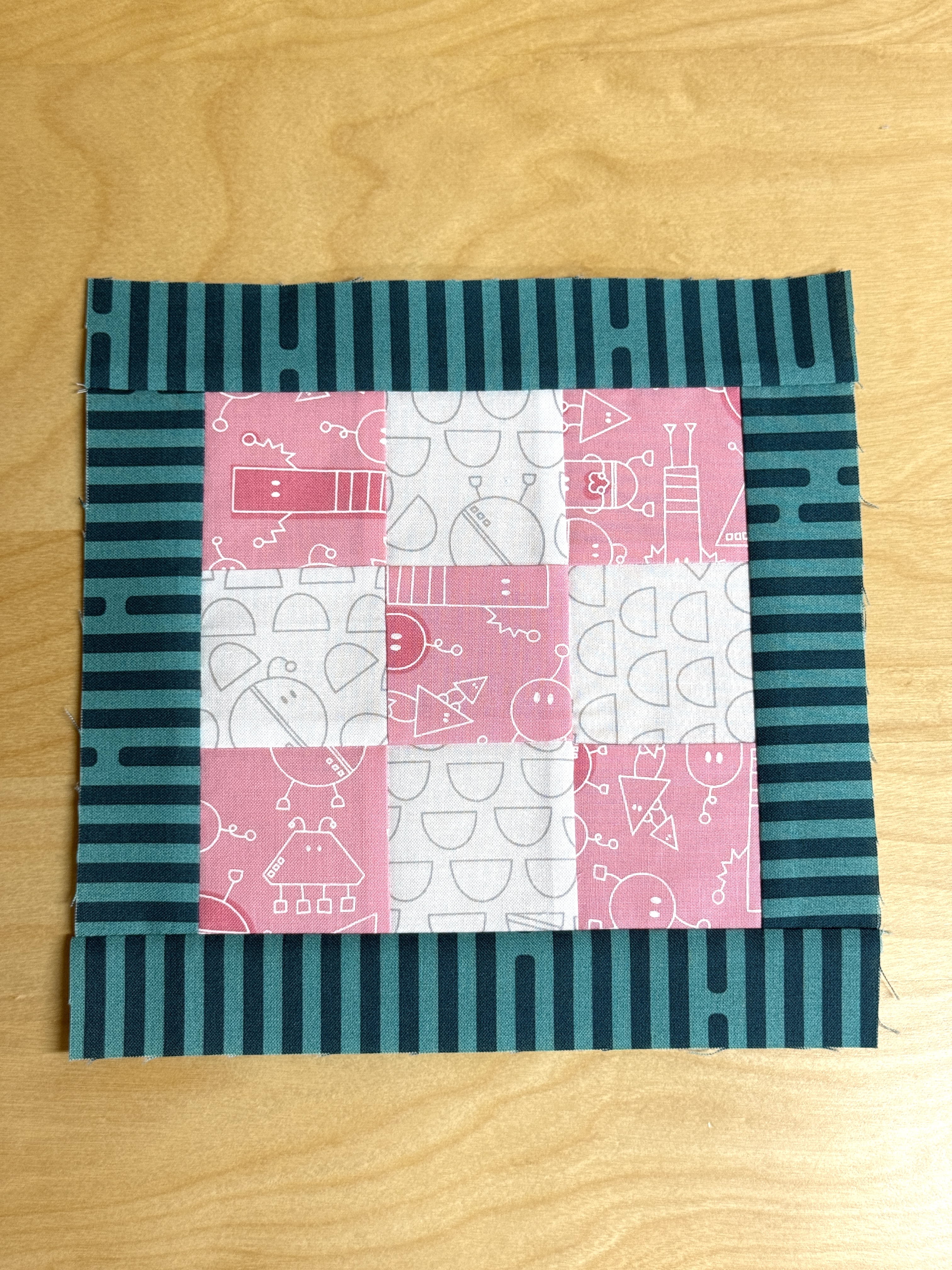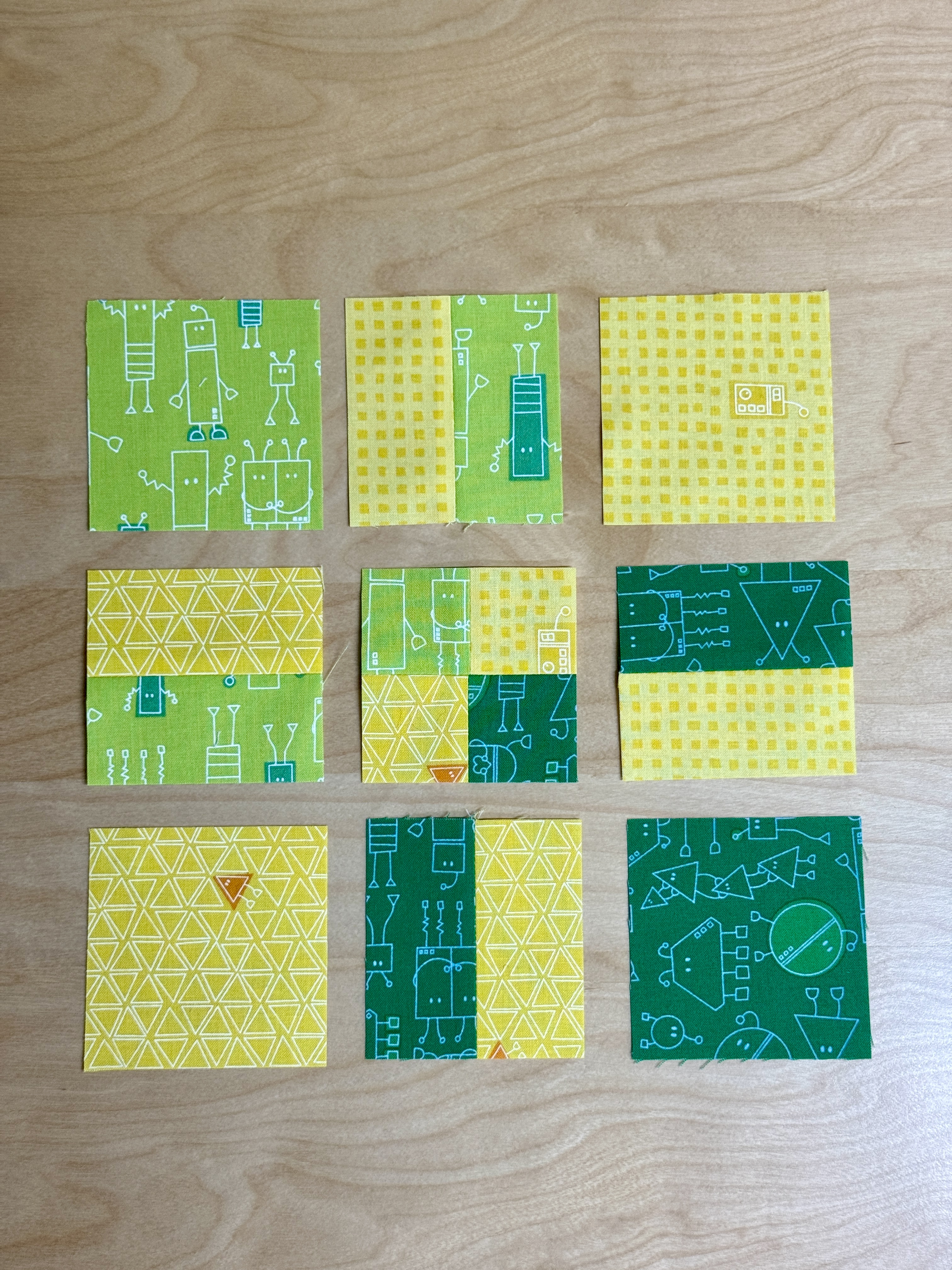 Nähen Sie diese wie abgebildet zusammen und bügeln sie alles gut. Ihr Block ist jetzt 8,5".