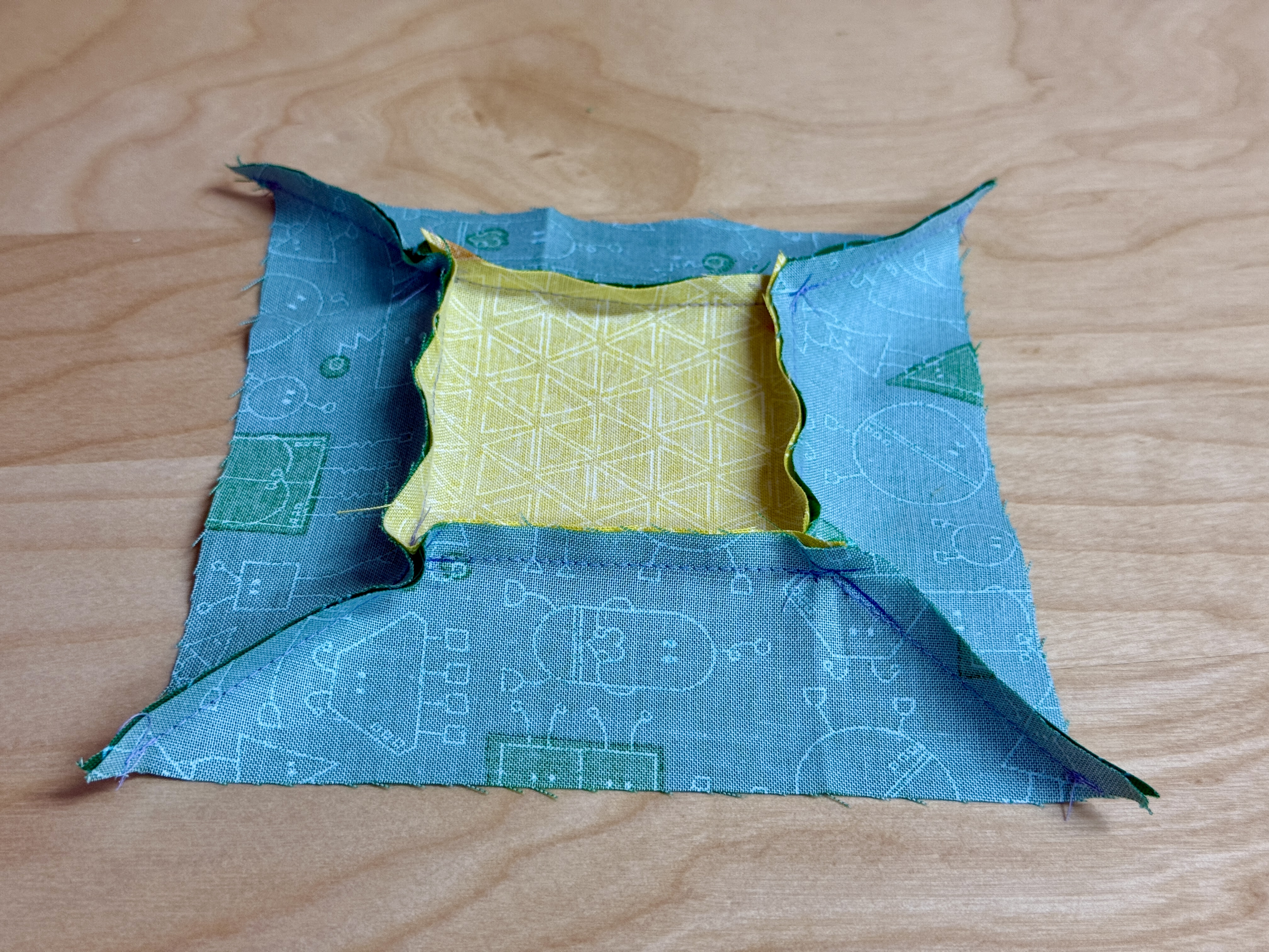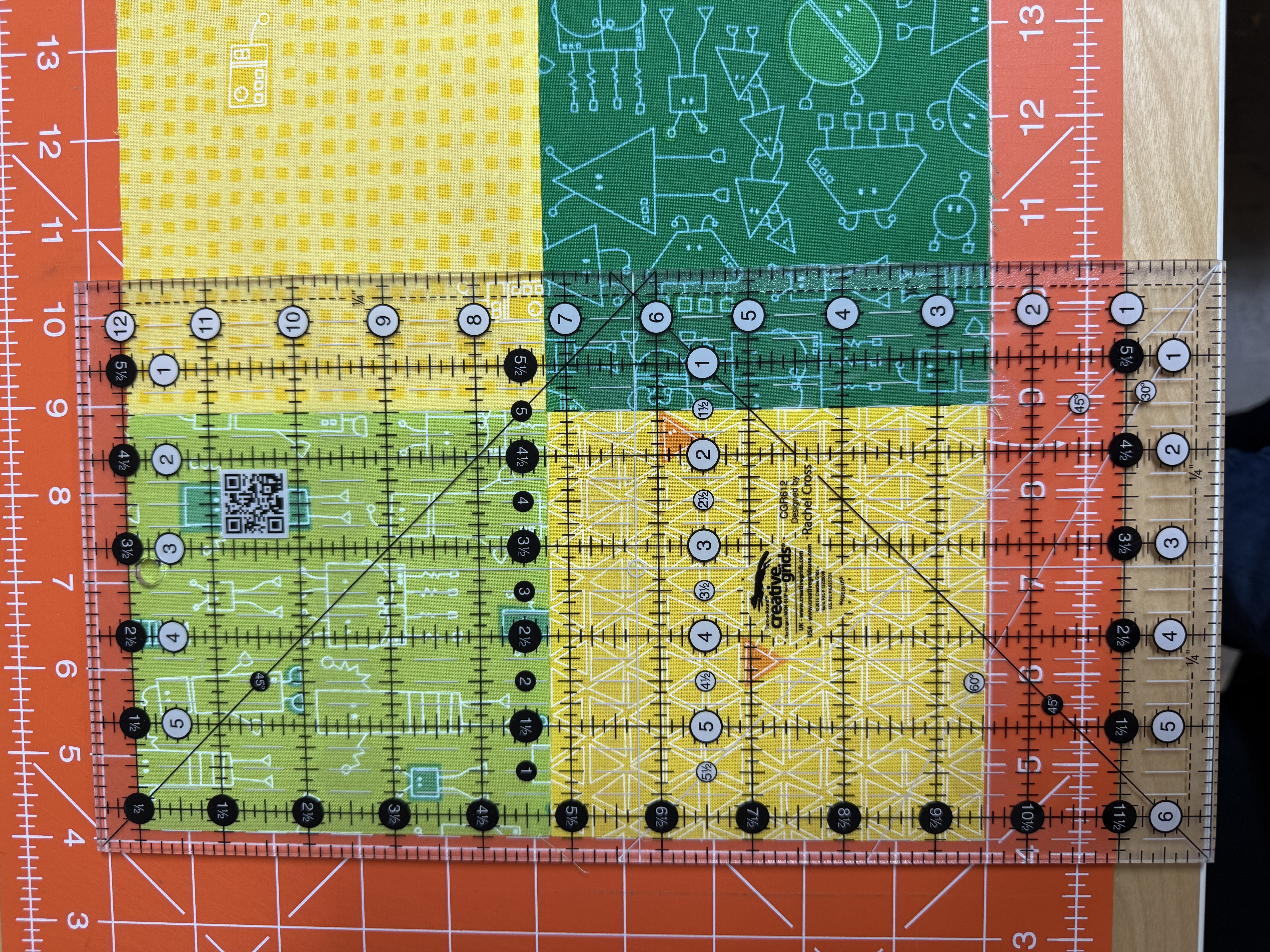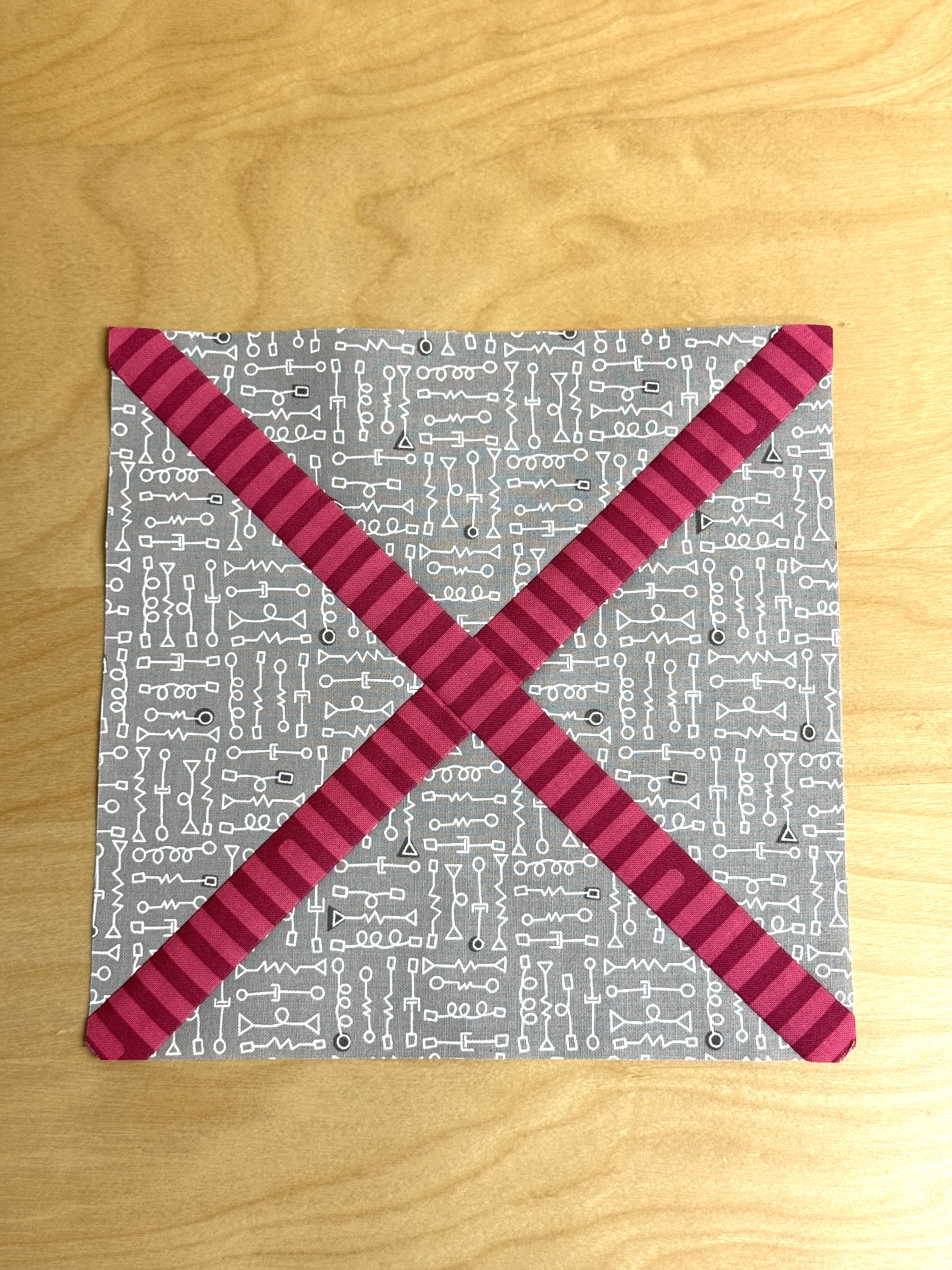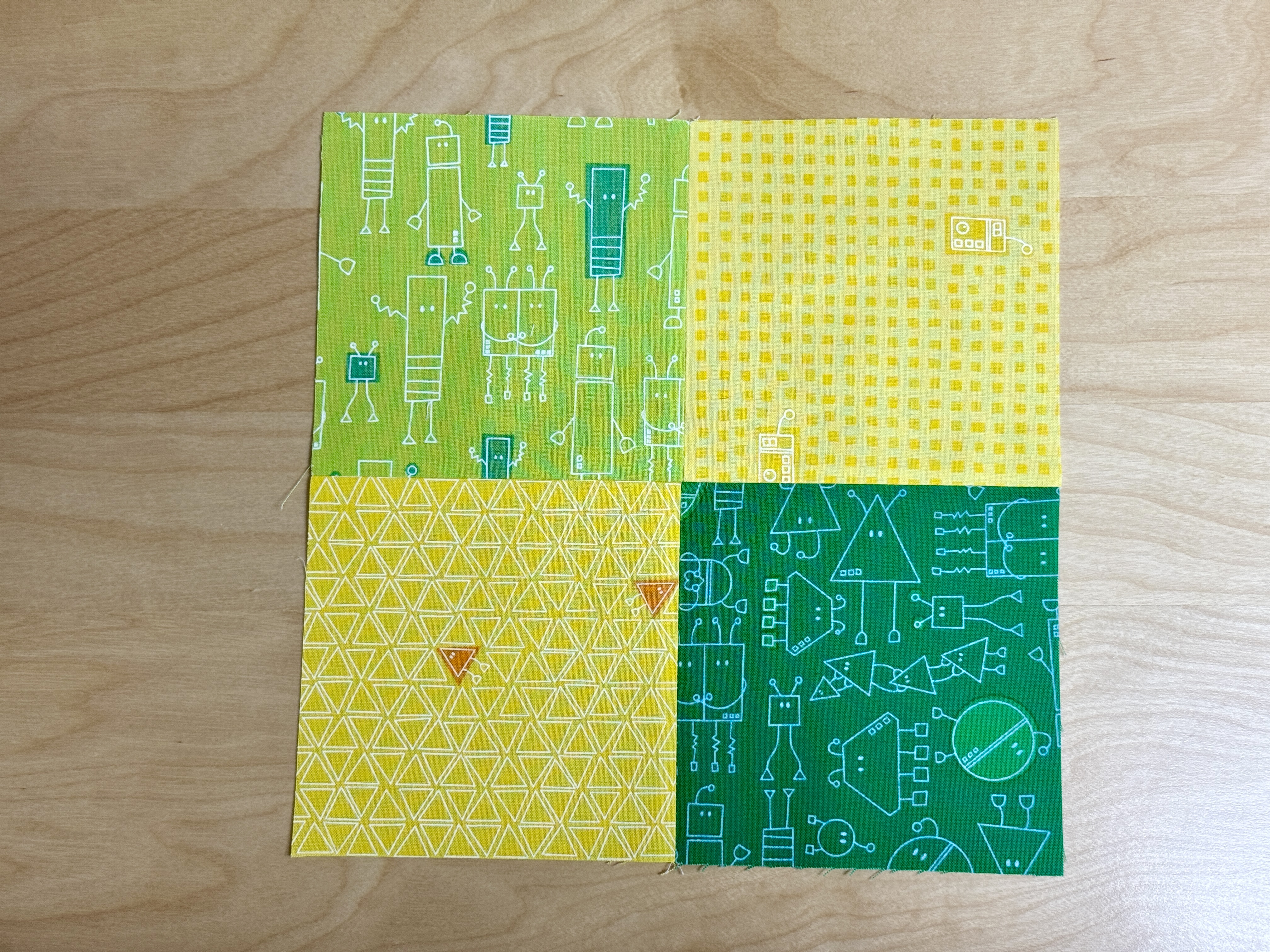 Nähen Sie die Dreiecke zusammen und bügeln Sie alles gut. Trimmen Sie dann das Quadrat auf 4,5".