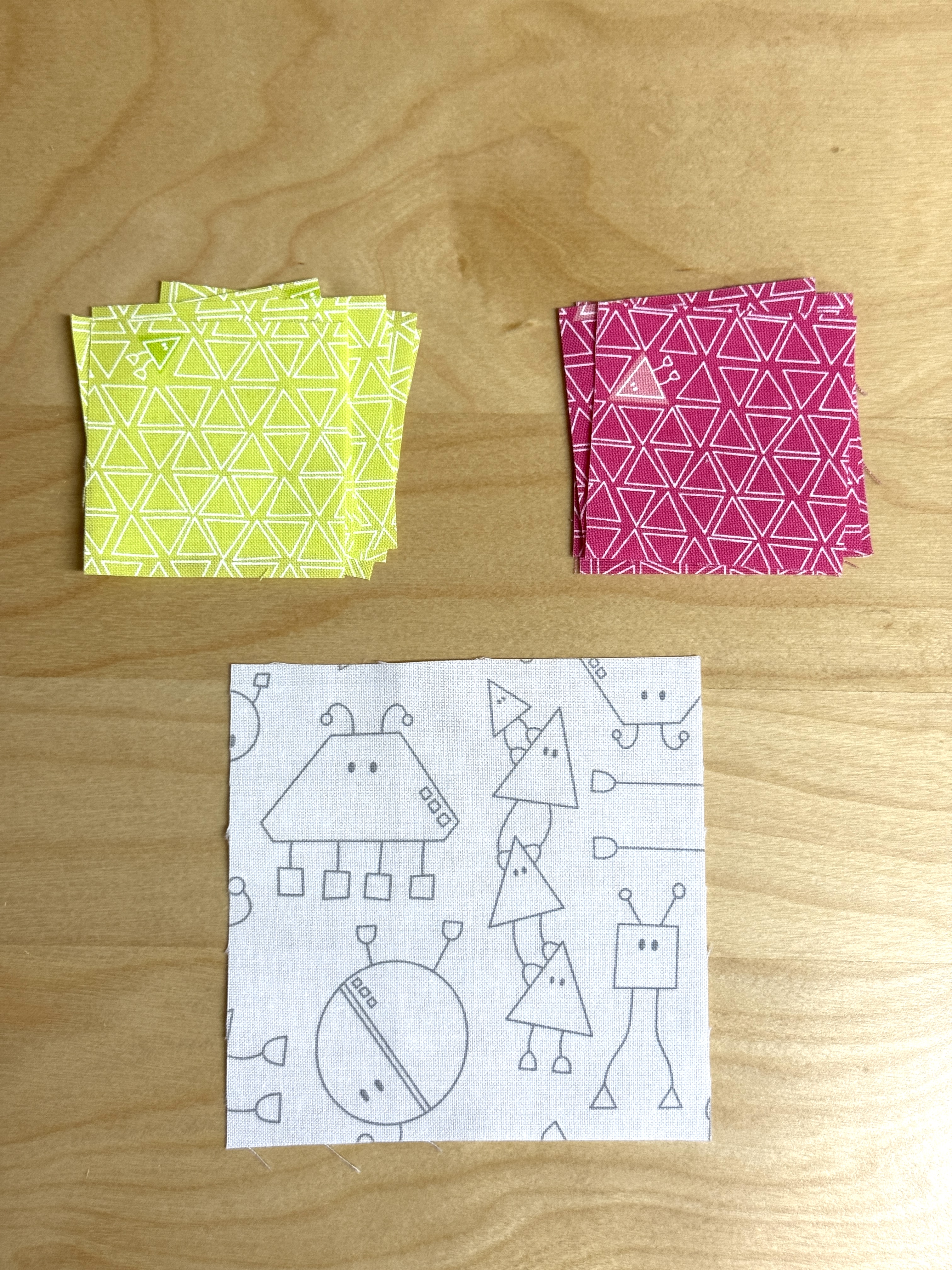 Schneiden Sie 12 kleine Quadrate in 2,5“ und 1 großes Quadrat in 4,5“.