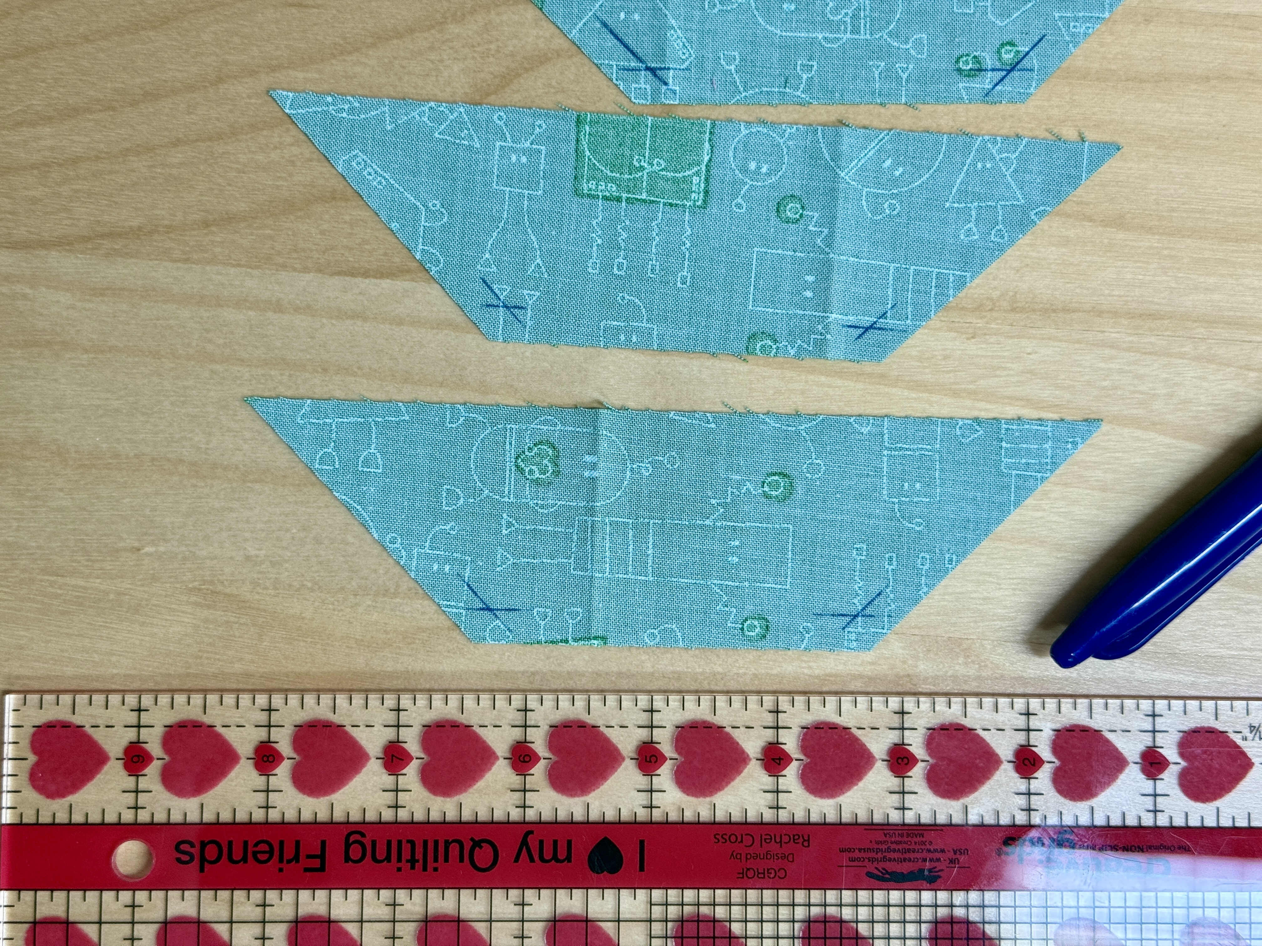 Bügeln Sie alles gut und schneiden Sie die Teile auf 4,5“ zurück.