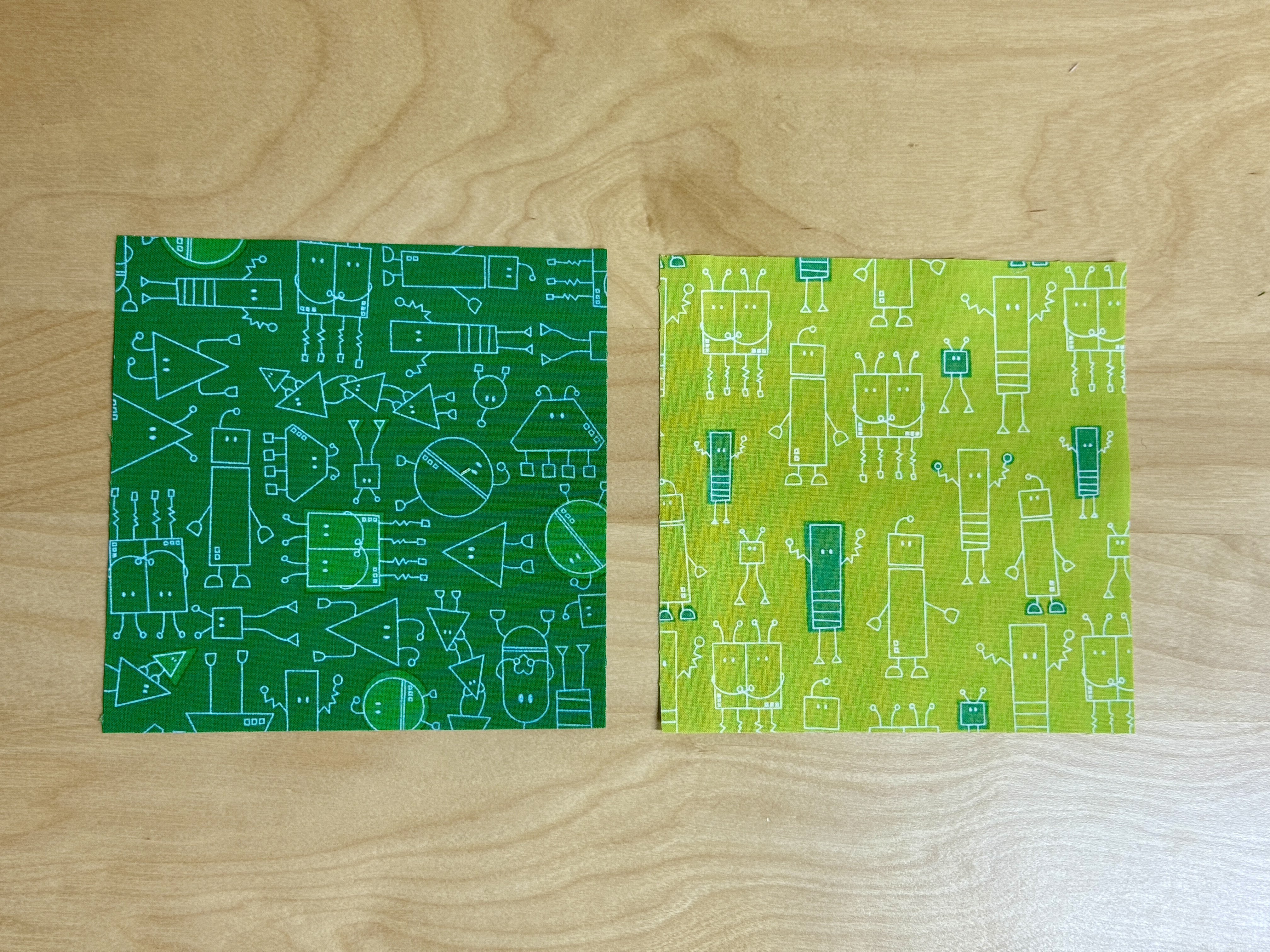 Schneiden Sie 2 kleine Quadrate in 4,5“ und 2 großes Quadrat in 5“.