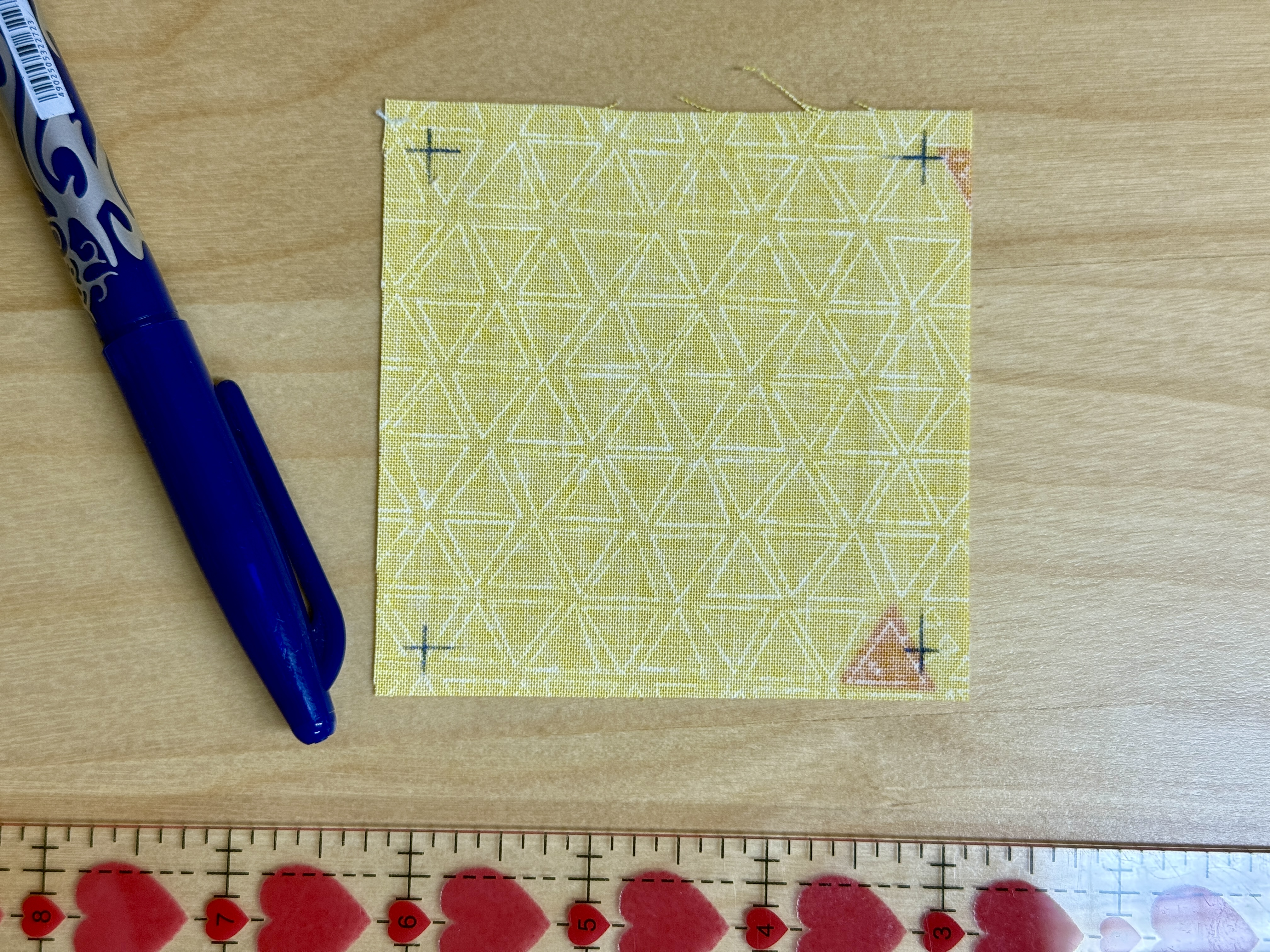 Zeichnen Sie sich an den Ecken die Nahtzugabe von 1/4 Inch ein. Dies ist der Treffpunkt ihrer Nähte.